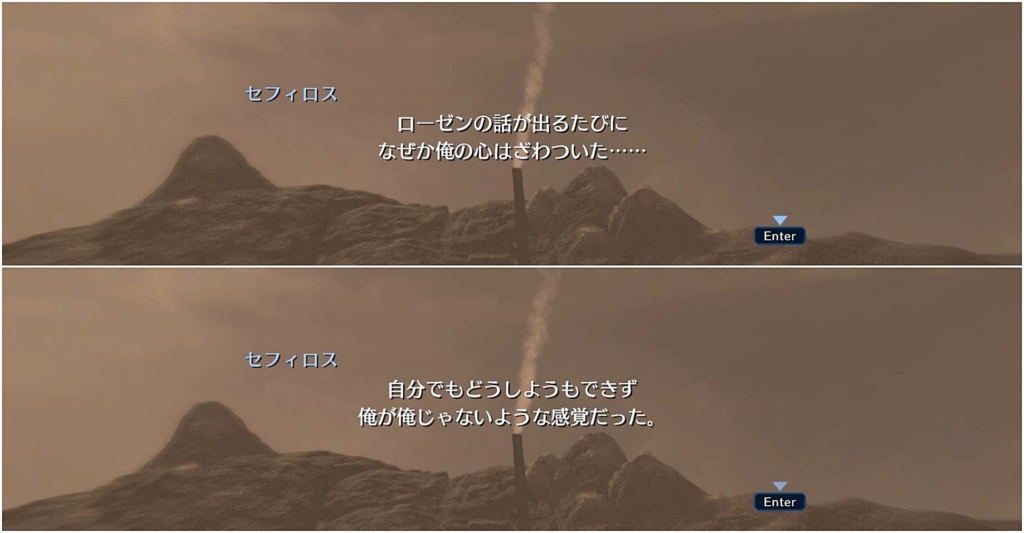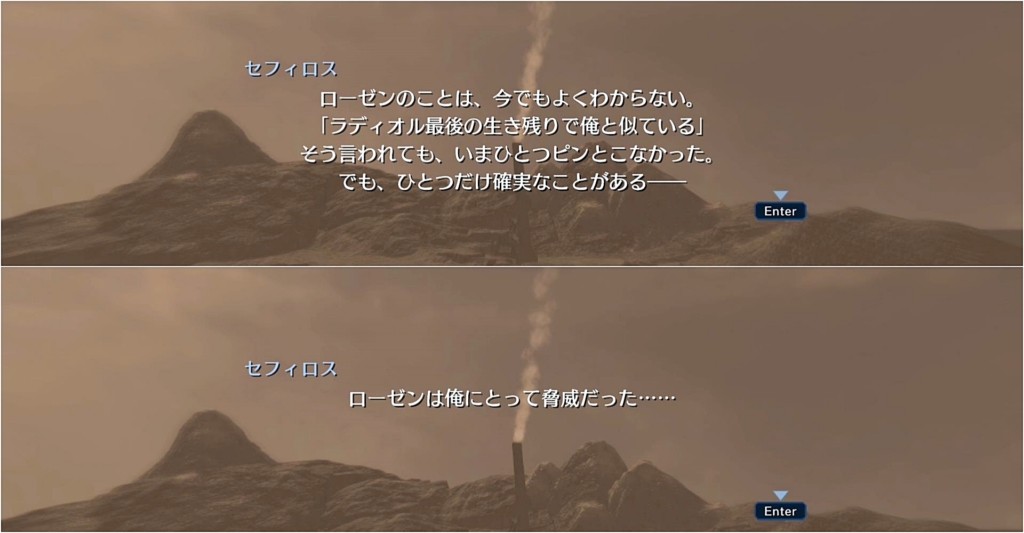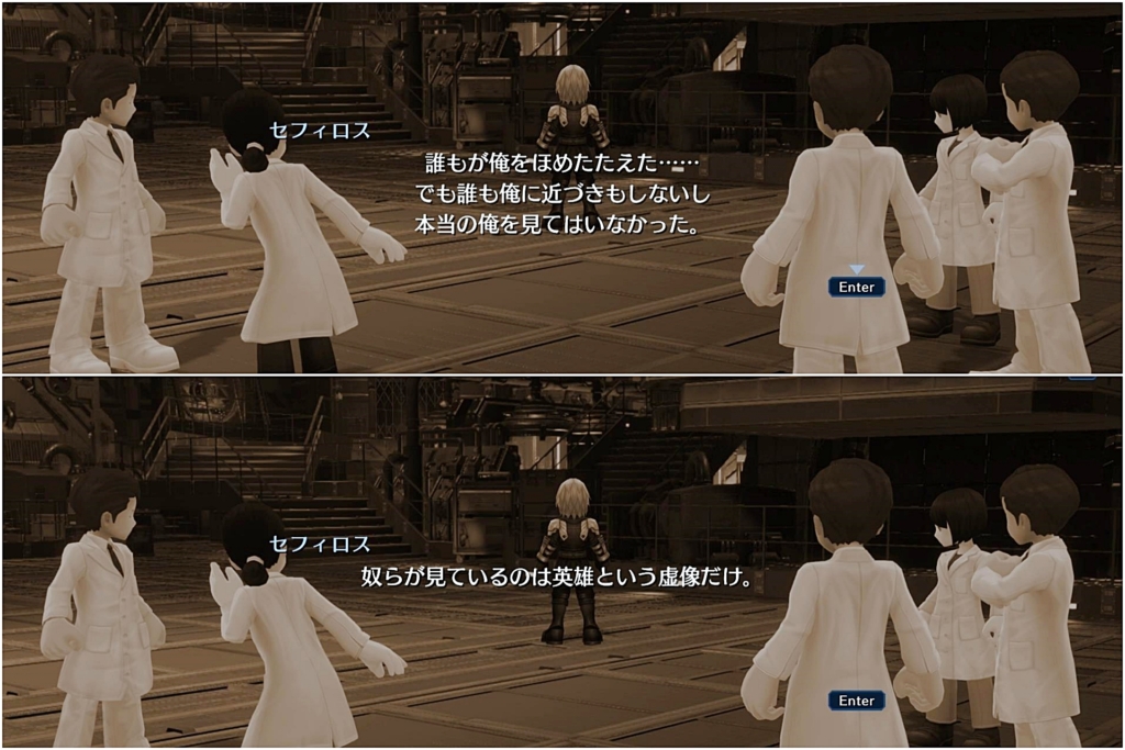 こういうところからセフィロスの孤独とか寂しさが垣間見えて、宝条やルクレツィアたちがしてきたことはほんと罪深いなと思う。