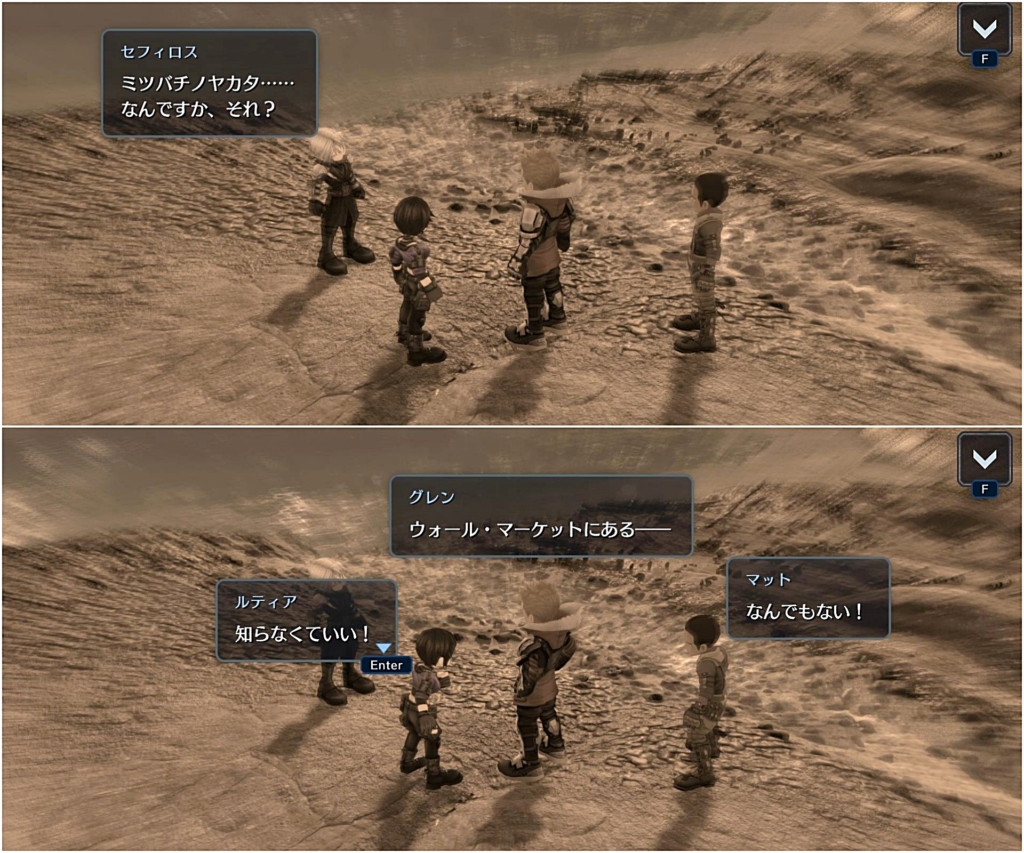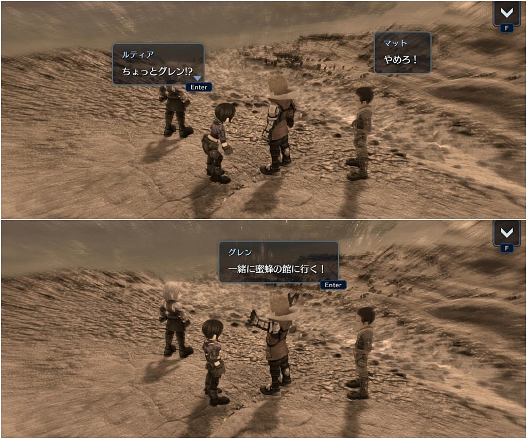 子ども相手にとんでもないことを言い出すのがわかったマットとルティアの反応といい、蜜蜂の館がどんなところなのかわからないセフィロスが首を傾げて聞くのがかわいかったり、さらに詳しく説明しようとするおバカなグレンやそれを止めるマットルティア^^;