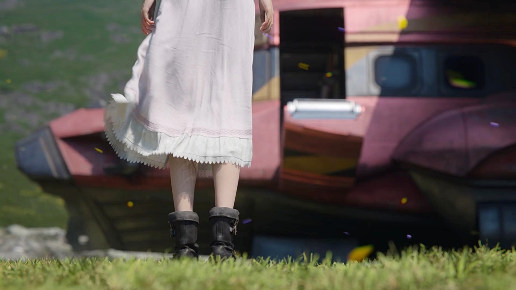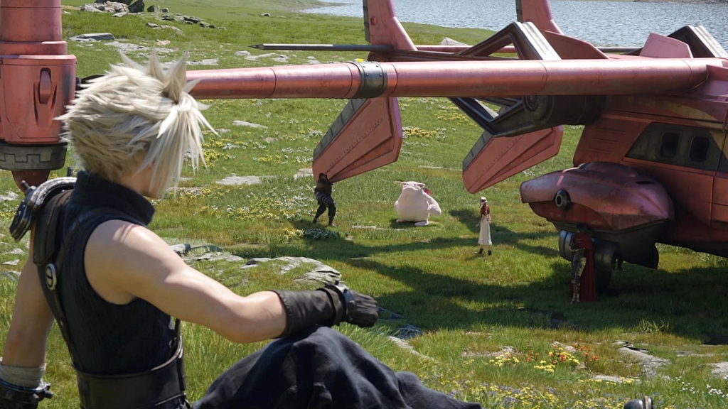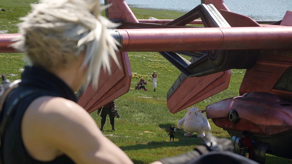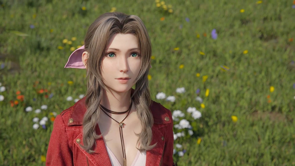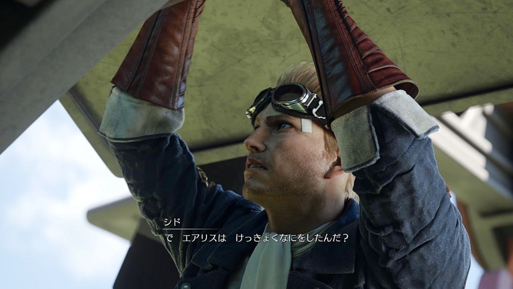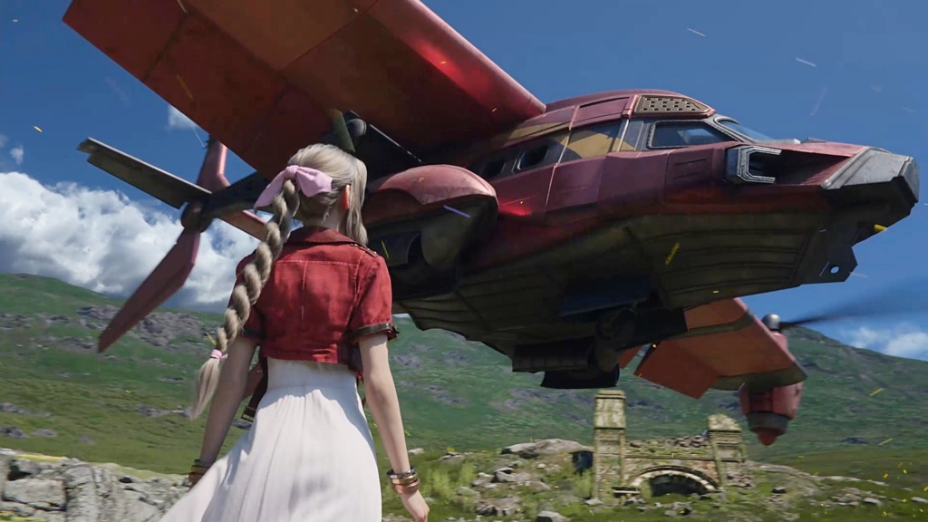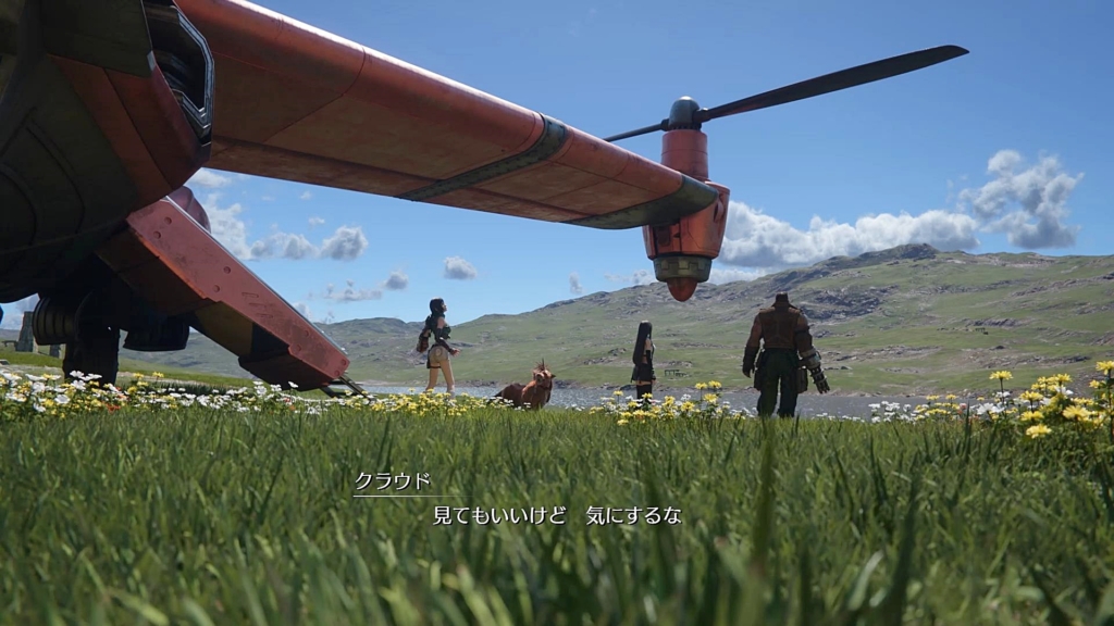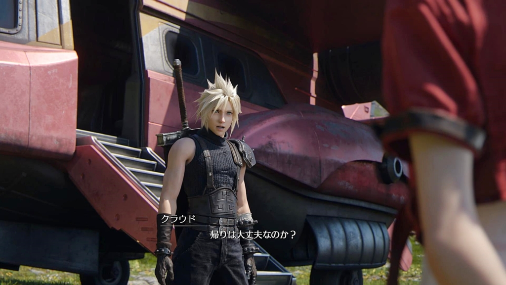出発のため、タイニーブロンコを整備する仲間たちを見るクラウドの視界にはエアリスの姿。