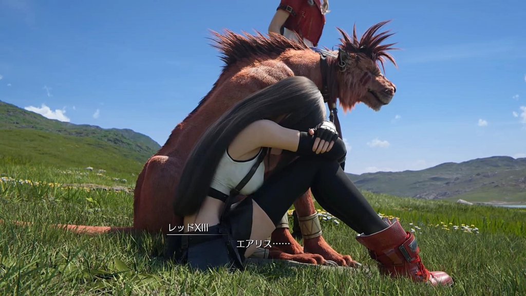 これ、ナナキだけでなく、こうして泣いてるティファにもそっと頭を撫でてあげるとかして欲しかった。