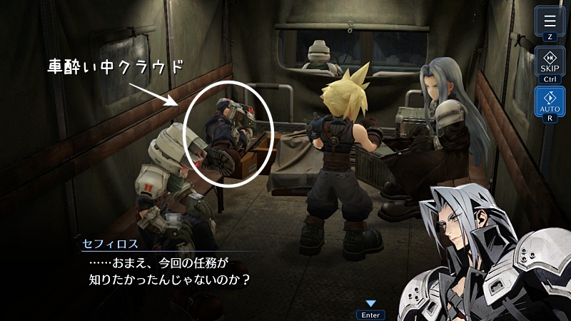 原作だと車酔い中の一般兵クラウドはただ座り込んでたんじゃなかったっけ?