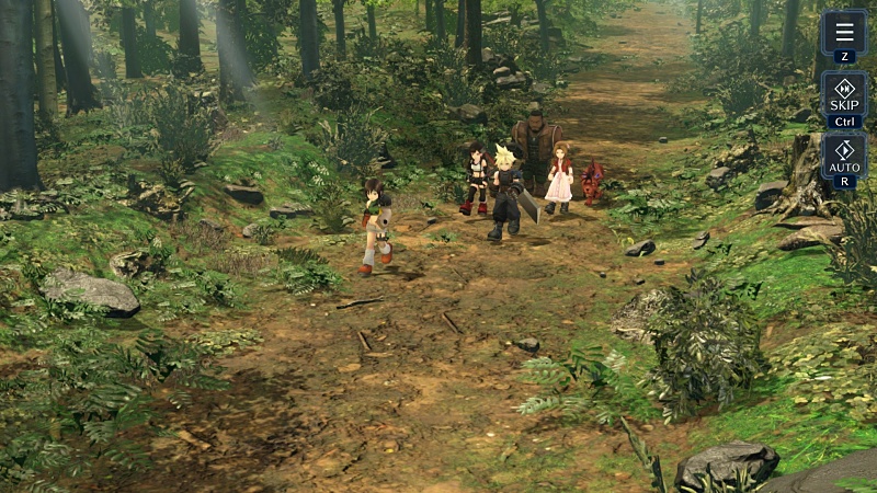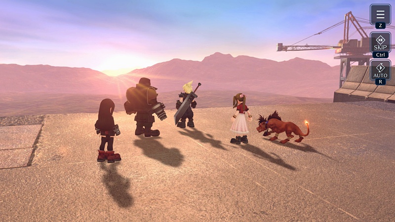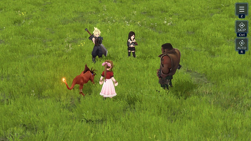 原作ポリゴンだとみんな立ちんぼでクラウドの話を聞いていたけど、より細かい描写ができるようになった今だとこんな感じでクラウドの話を聞いてる。