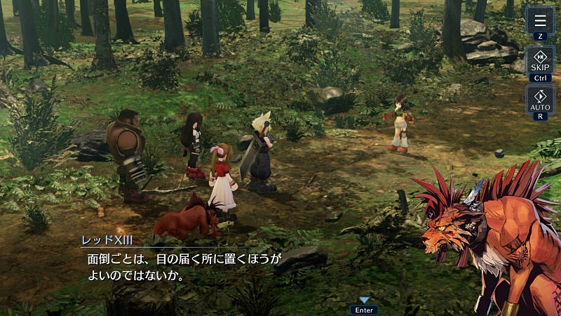 癒し系ナナキと賑やか担当ユフィ、やれやれと思いながらもちゃんとふたりの面倒を見るリーダークラウドという構図が好きなんだな(´∀`)