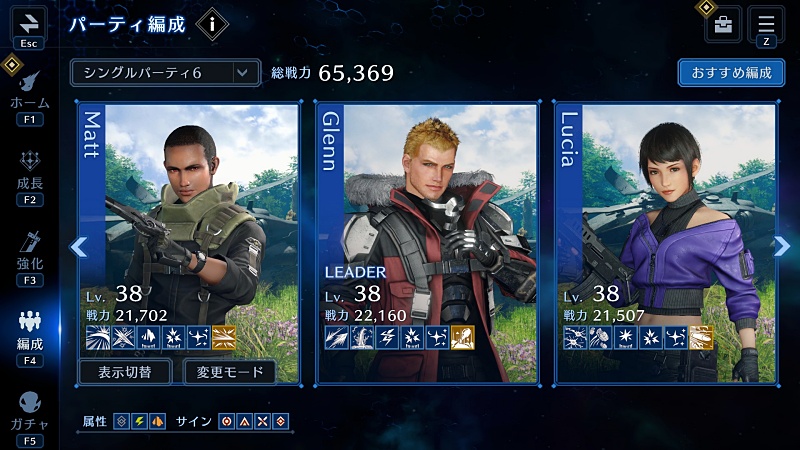 ちなみにストーリー以外での素材集めやイベントなどメインで使ってるパーティがこれ。