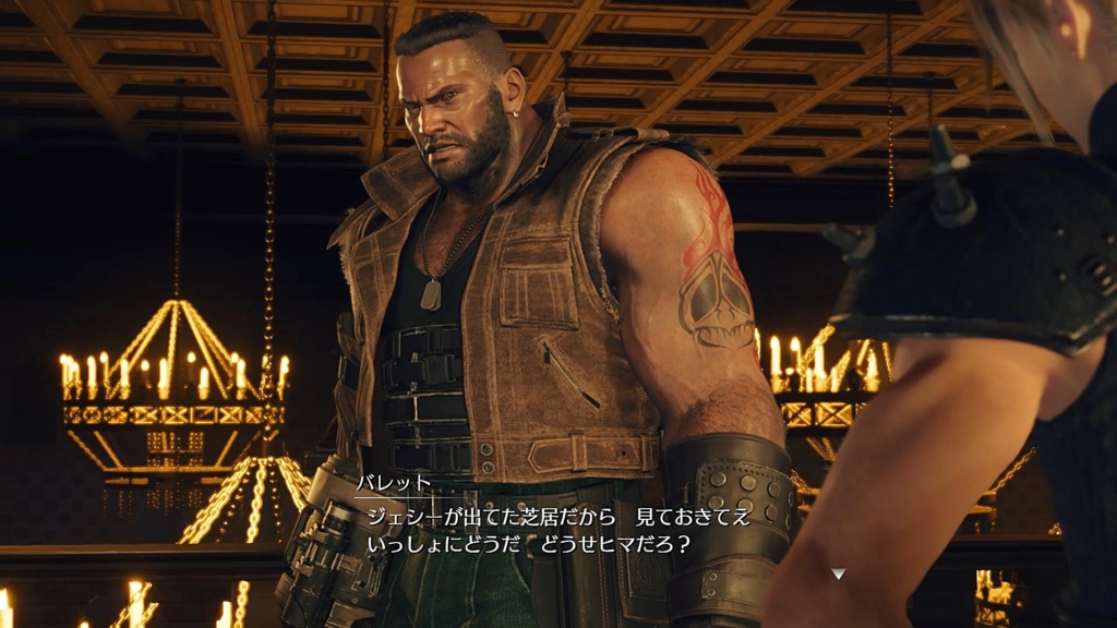 ジェシーの芝居を見るのにクラウド誘うバレット、めっちゃいい。