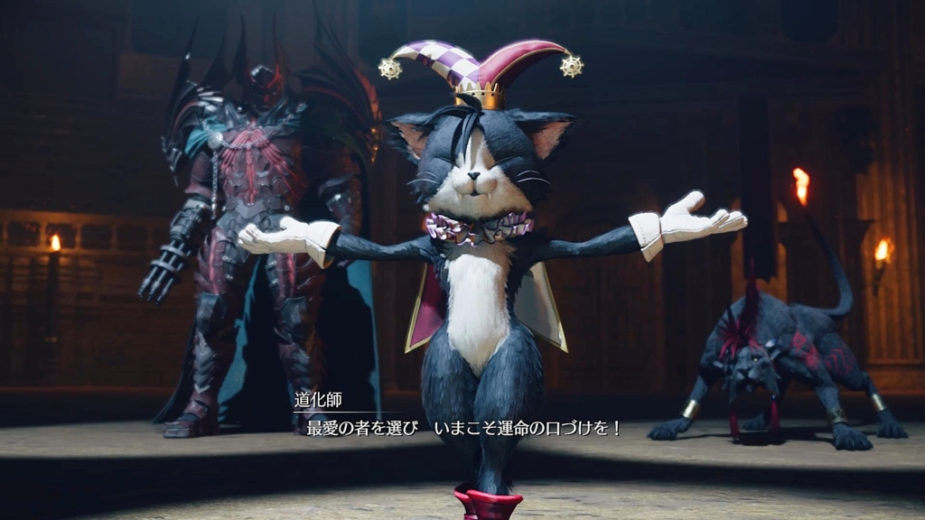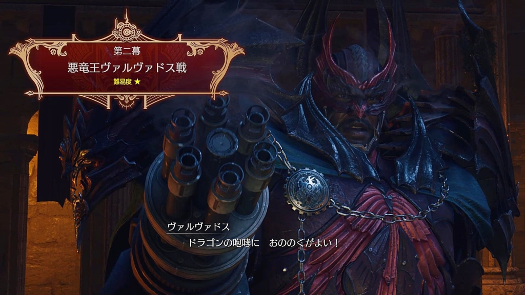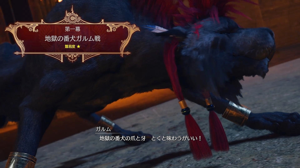 第三幕まであって、一幕と二幕はそれぞれナナキ扮する地獄の番犬ガルム戦とバレット扮する悪竜王ヴァルヴァドス戦がある。