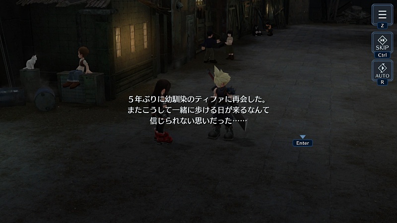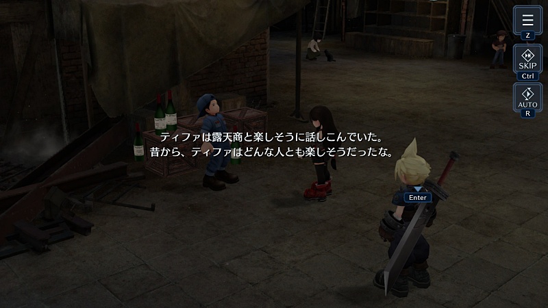 魔晄中毒状態でミッドガルの七番街スラムに辿り着いてティファと再会したときのことを知ることができます。