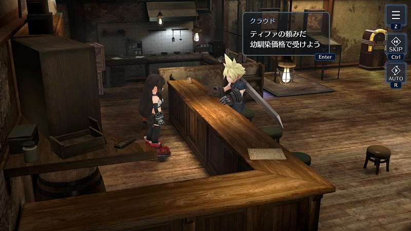その報酬についてクラウドがあまり納得してないのか、ティファが一生懸命クラウドの納得がいくような金額やそれに代わる報酬をいろいろ提示する。
