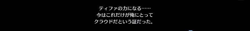 最後の「本当に欲しいのは…」なんて、クラウドはお金が欲しいなんて言っていたけど本当はティファからの言葉だよね。