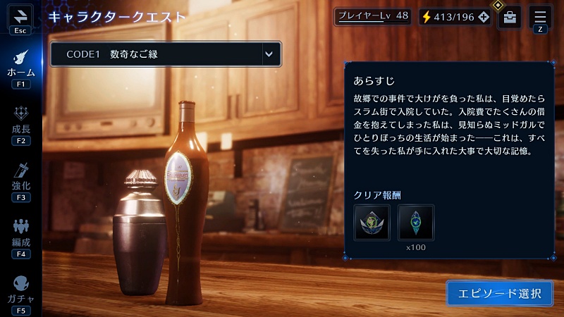 メインのストーリーとは別にキャラそれぞれに焦点をあてたキャラクタークエスト。