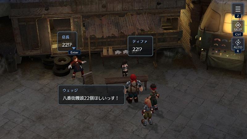お饅頭を売る仕事で地道に借金を返していたティファ。