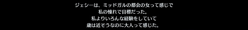 リメイクでのジェシーとティファがあまり仲良さそうにみえなかったから、だから小説できちんと二人の関係が補完されててうれしかったな。
