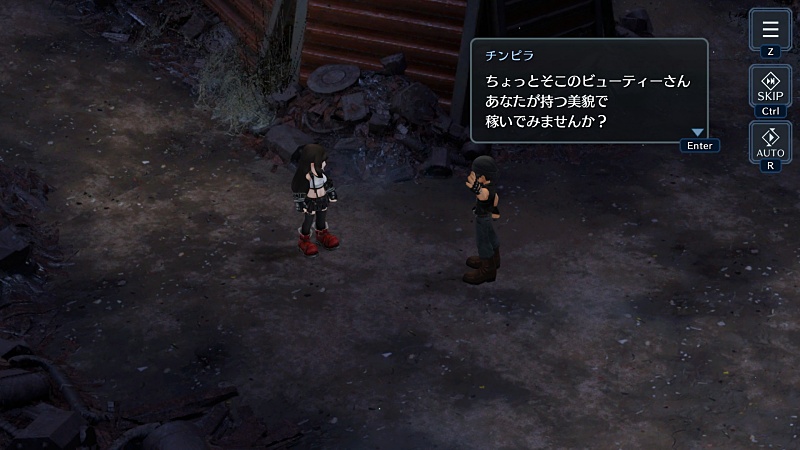 ティファのような可愛い子がスラム街でひとりで生きていくのはやっぱり危険と思わせる場面。