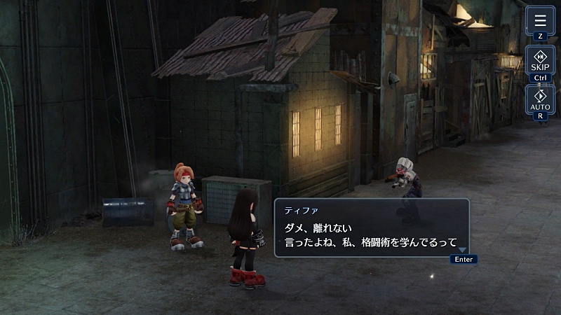 でももしかしたらジェシーはティファの性格を見て、アバランチの活動はティファには合わないとすでにこの時点でそう思っていたのかな。