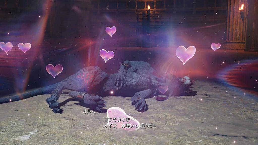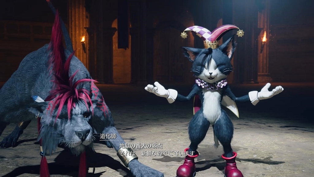 ナナキ扮する地獄の番犬の弱点は骨付き肉。