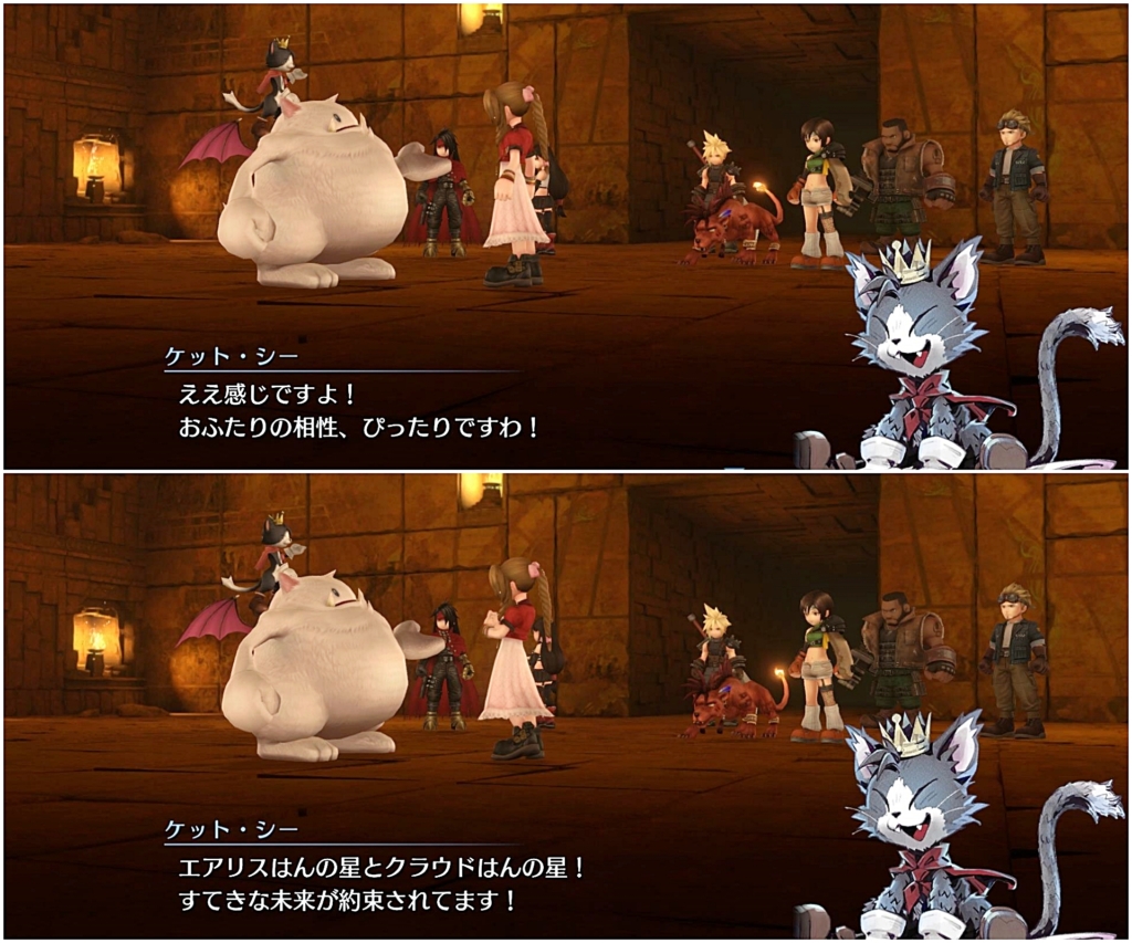 びっくりして尻尾ピーンとなってるナナキとか、みんなは驚いているのに微動だにしないヴィンセントとかw