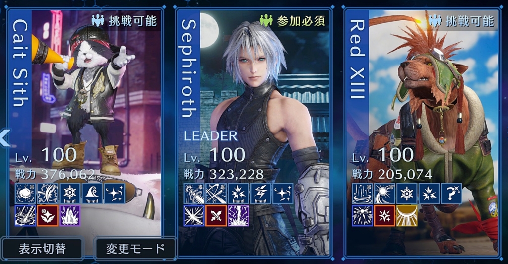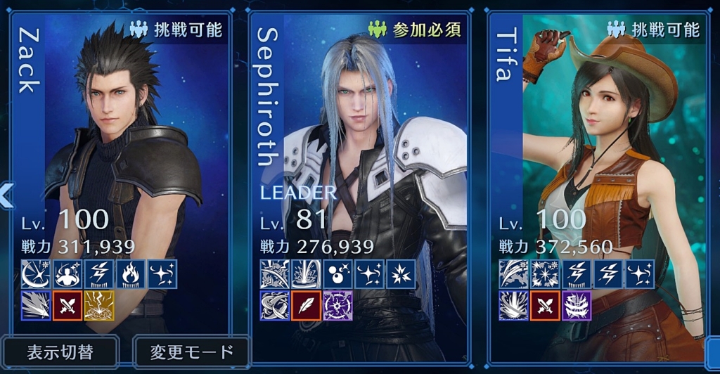 大人セフィロスがプレイアブルキャラになったことでこのようなパーティ編成も。