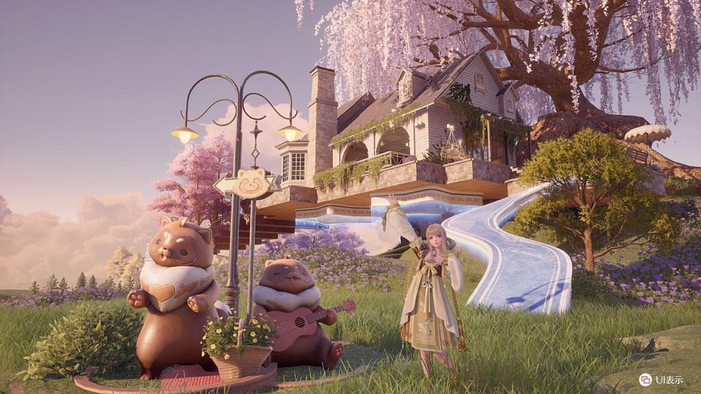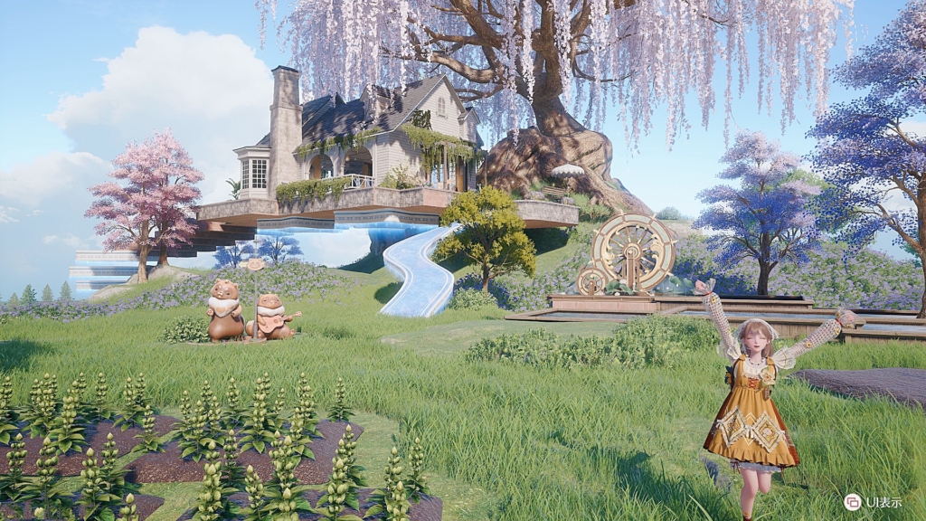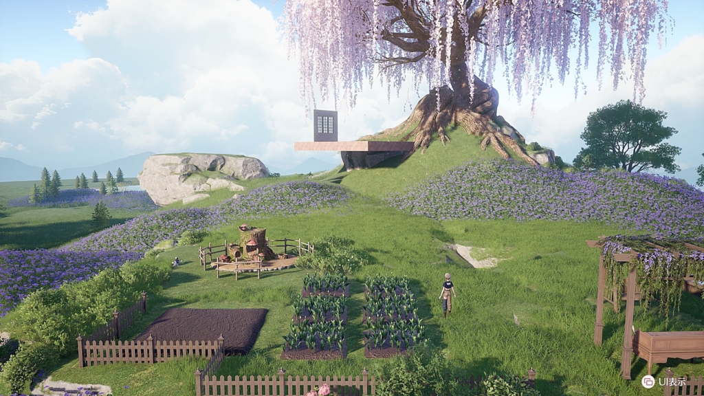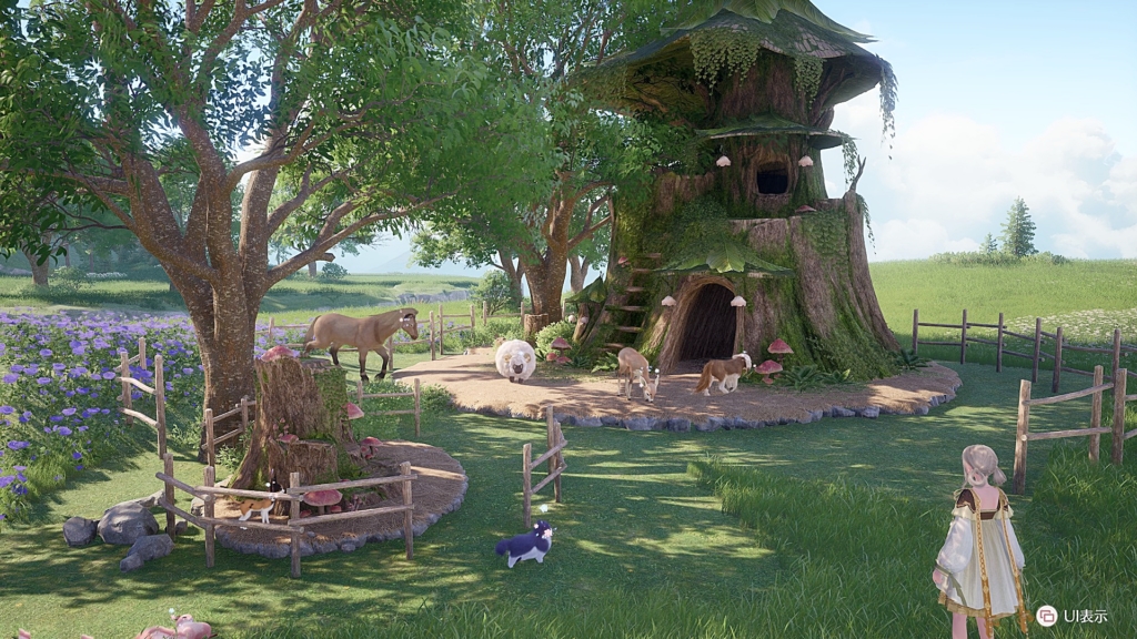 小高い丘にあるピンク色の大きな木は気に入っていたのでそれは取り壊さずに木の上に建つお家風にしようと建築を始めたんだけど…