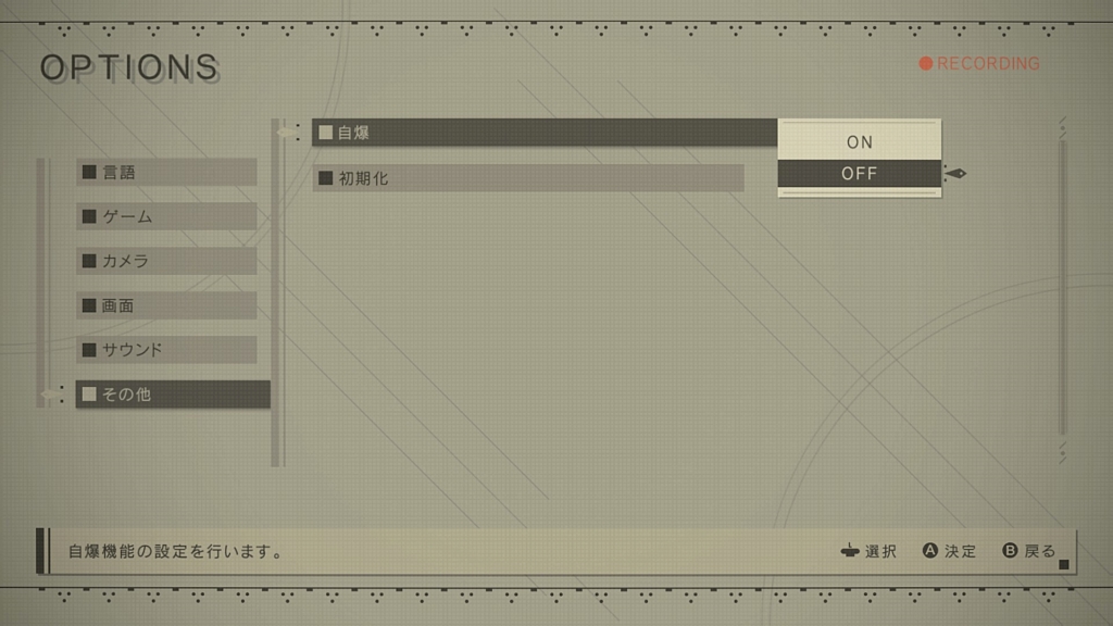 で、チュートリアルでのこの自爆のON/OFF選択。
