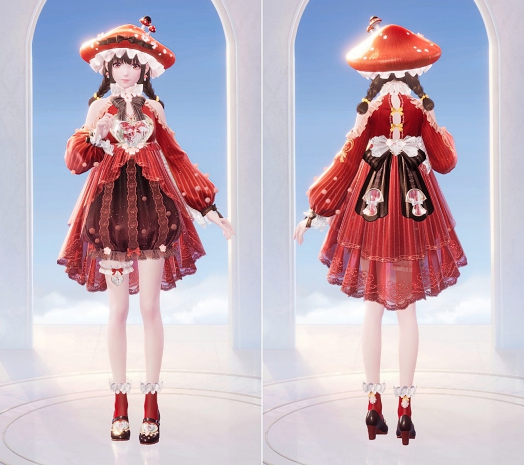 で、今回のこの衣装はスキル衣装できのこの帽子をポンポンって叩くと光るという。