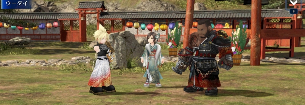 数少ないクラウドのかっこいい着物衣装とティファの着物姿。