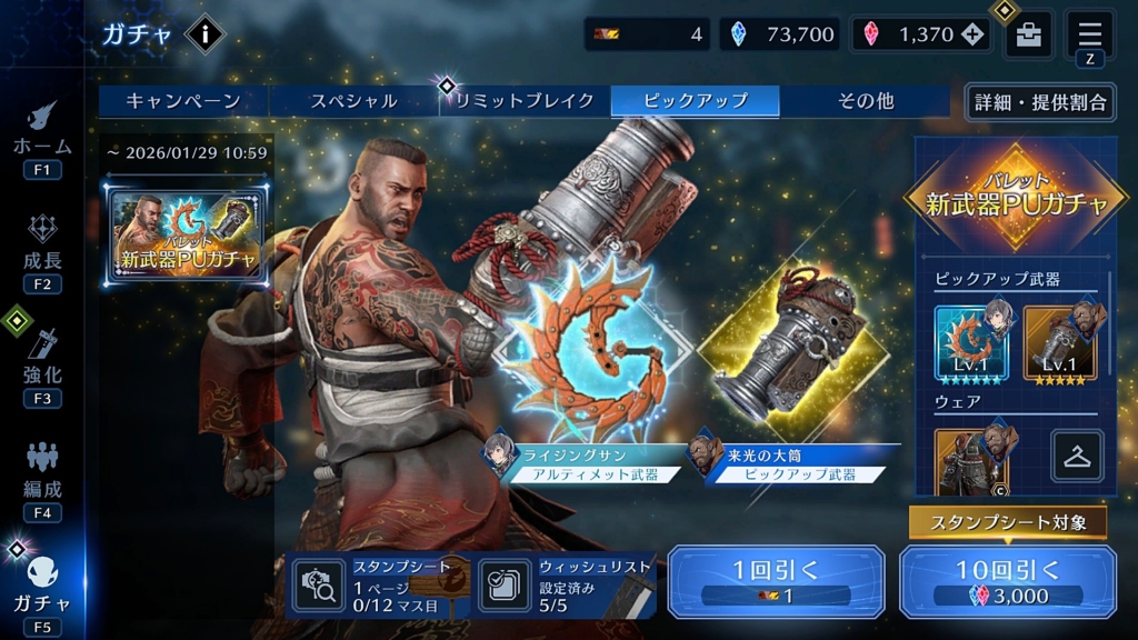 そして今月からアルティメット武器がユフィになり、まだ引けてないのでユフィの着物ガチャまで回そうか悩み中。