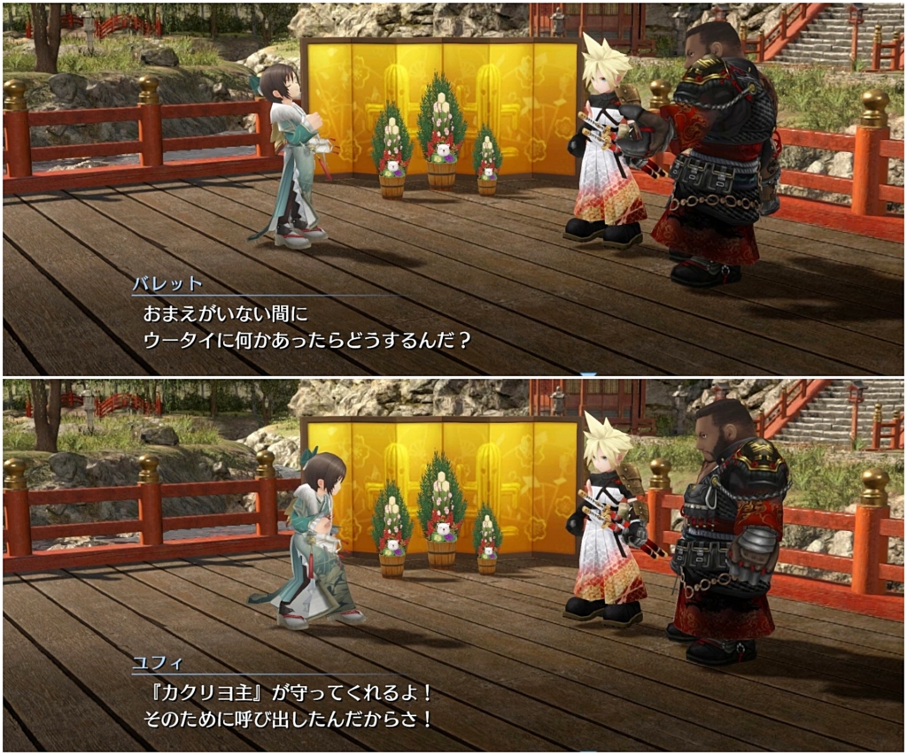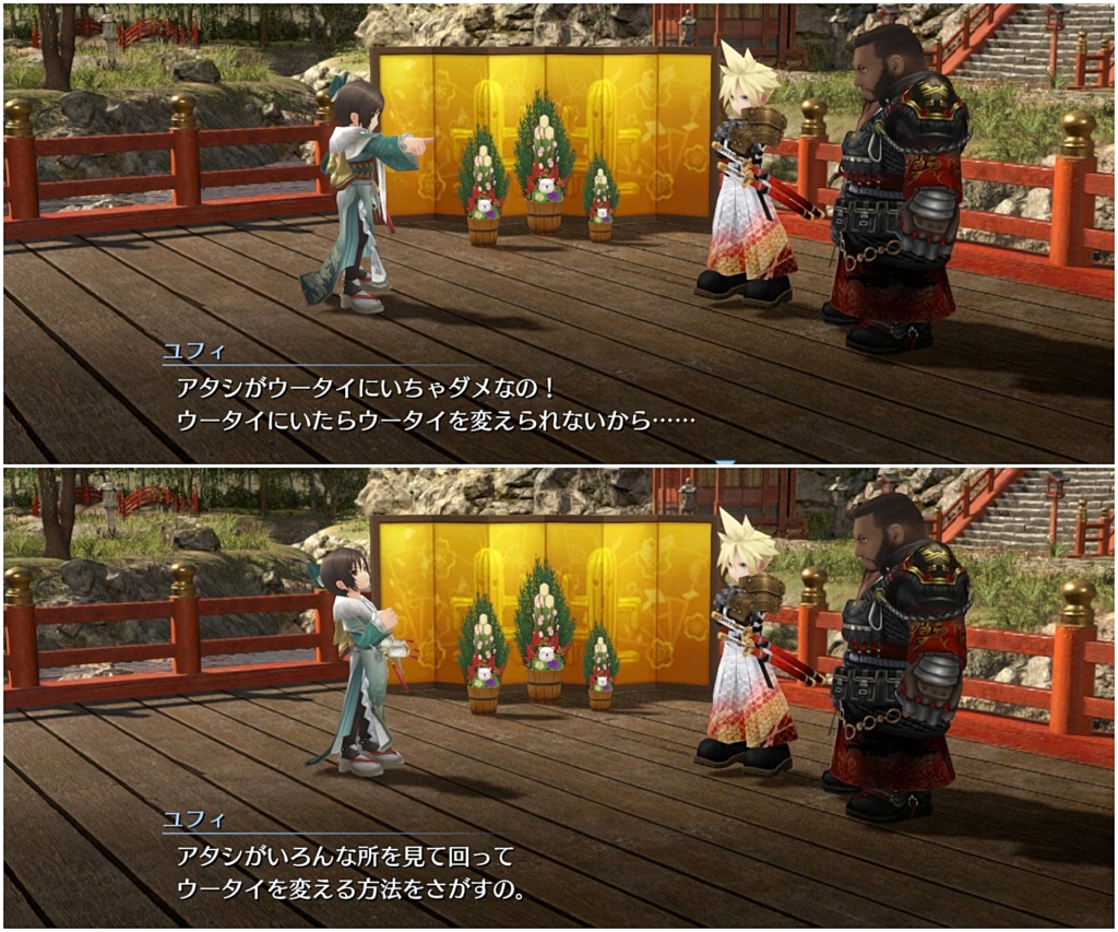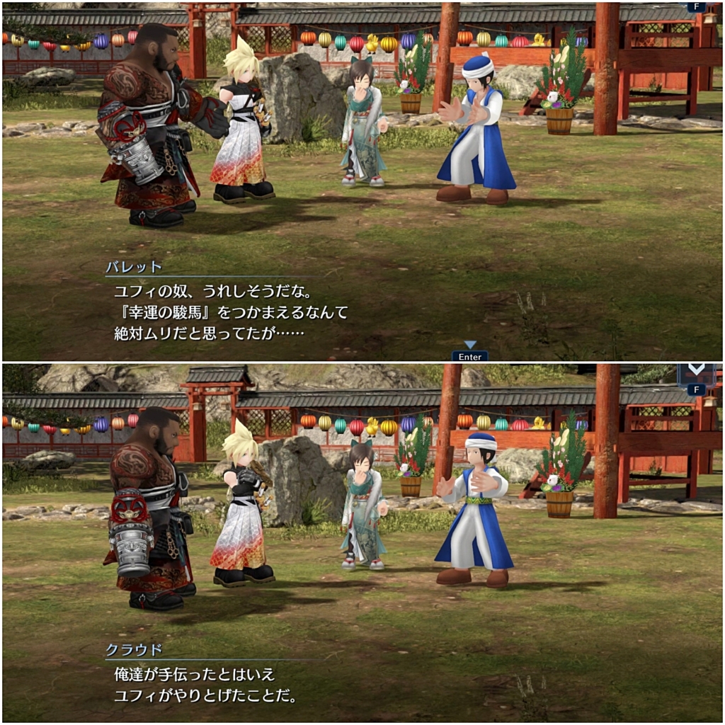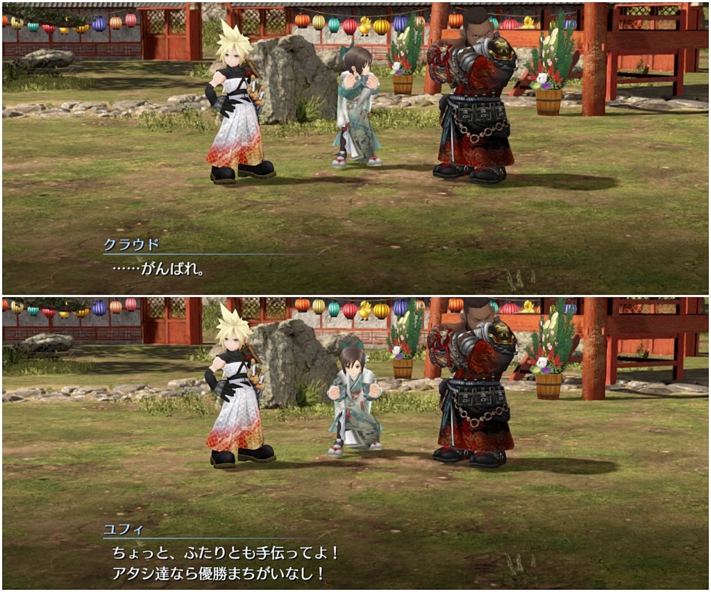 ウータイの伝統行事で「奉納馬の儀」というのがあるらしく、ユフィは毎年それに参加するも優勝はできないでいると。