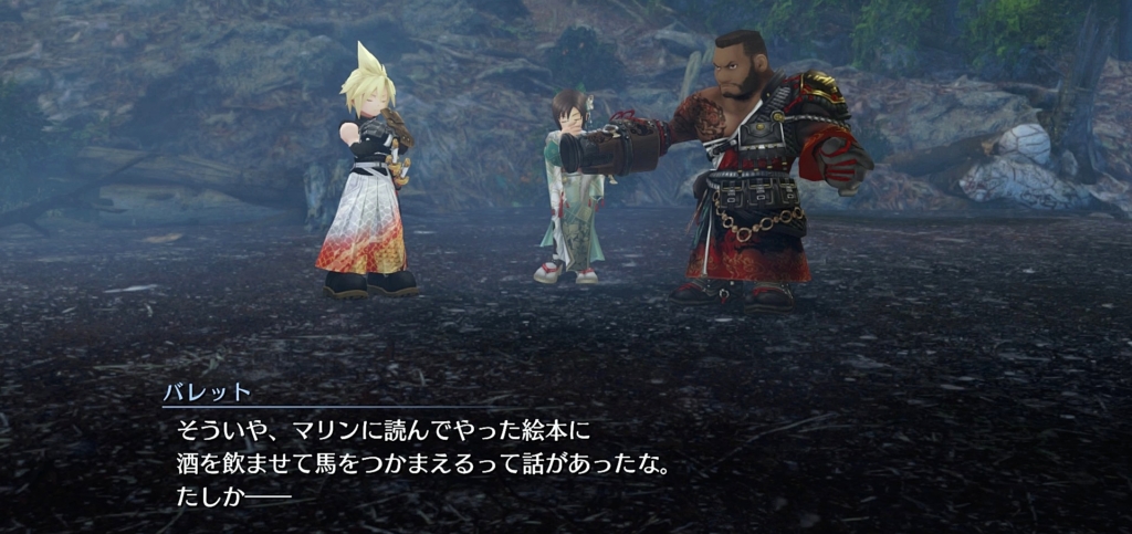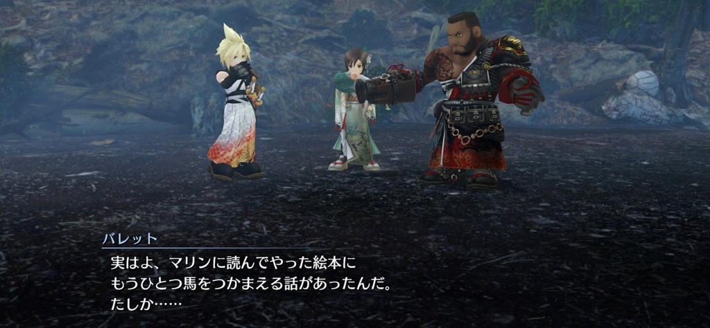 バレットがマリンのために絵本の読み聞かせをしてたんだなってわかることや、その絵本の話がウータイの昔話とか。