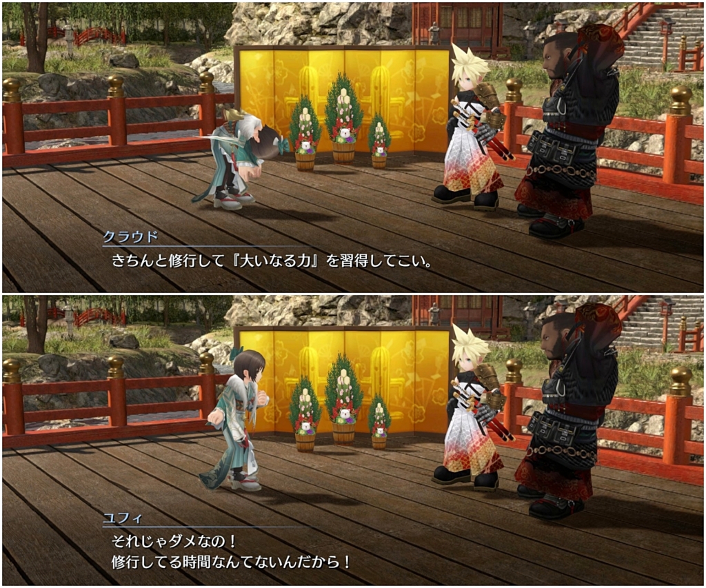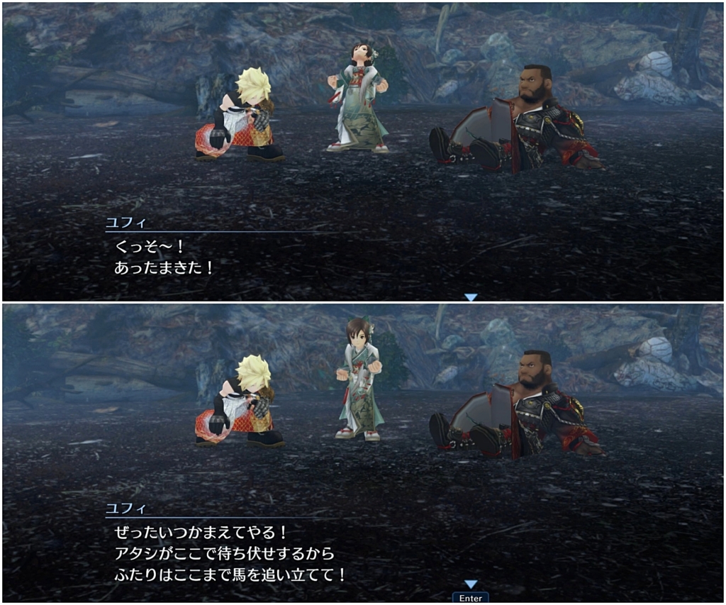 まあ普段のユフィを見ていたら、単にマテリアゲットのためだけに付き合わされてると思ってもしょうがないよね^^;