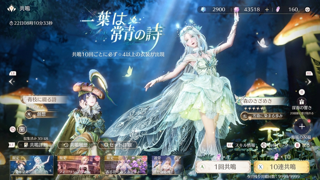 今回の星5ガチャはスキル衣装で、範囲内にある植物を一括採取できるというもの。