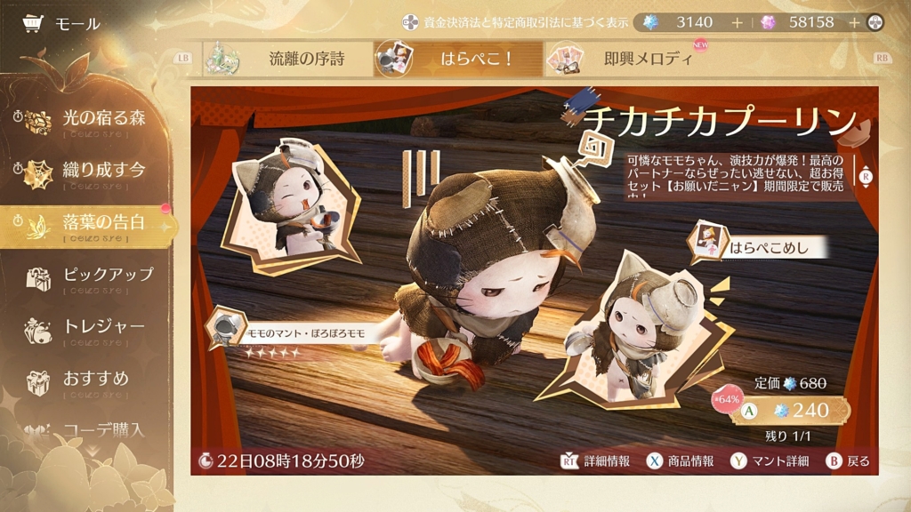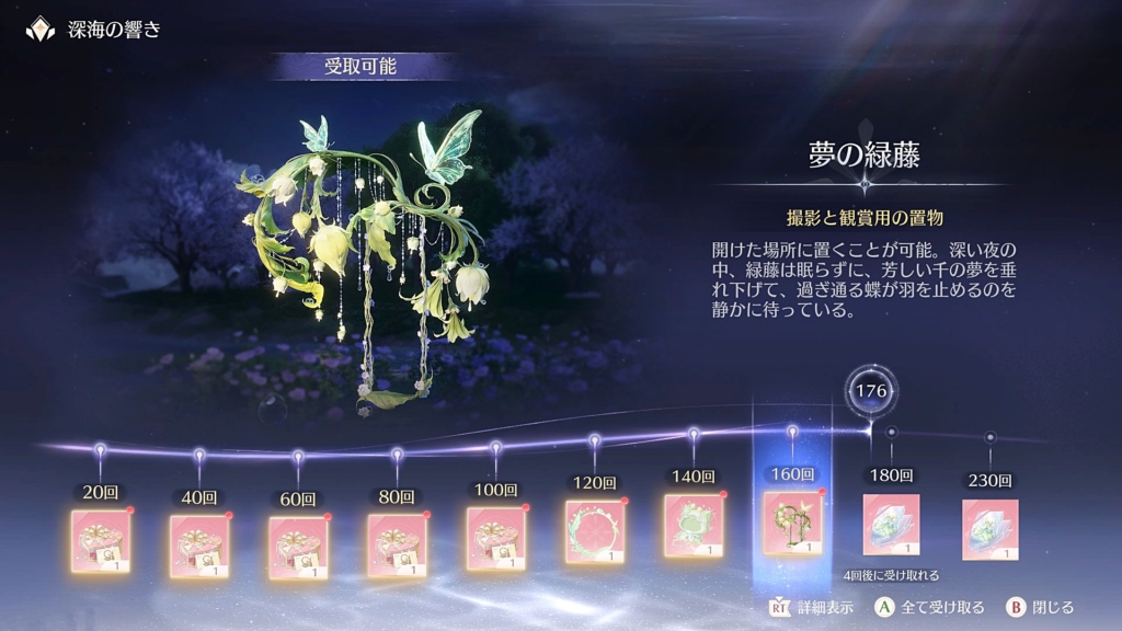 採取自体はスキル切り替えせずにボタンひとつで簡単にできるからわざわざ取る必要ないかなと思ったけど、衣装が好みなのと、160連目で貰える置物がやっぱり欲しいのでガチャまわしました。
