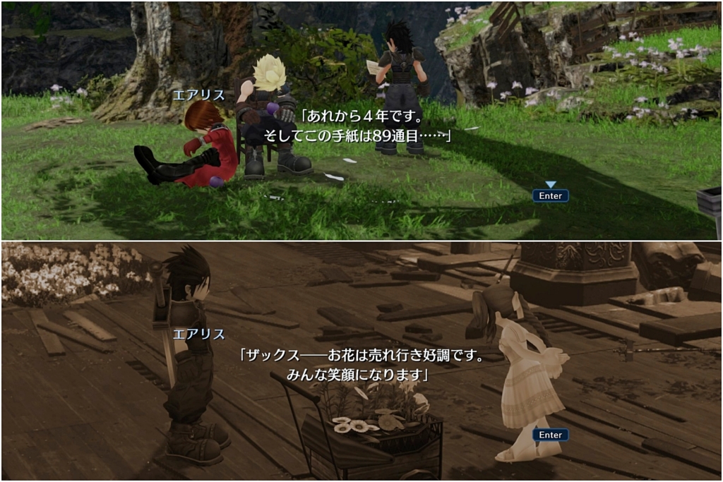 ニブルヘイムへ任務に行ったきり、連絡の取れないザックスへ手紙を書いていたエアリス。