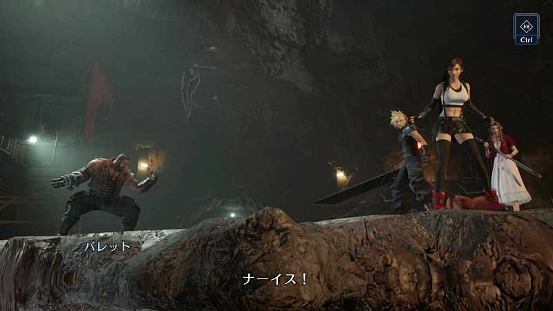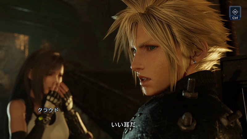 で、失敗したことを謝るティファに対してクラウドがそれを咎めるのではなく、イリーナの耳を褒めて自分たちの存在を相手に明かして登場する。