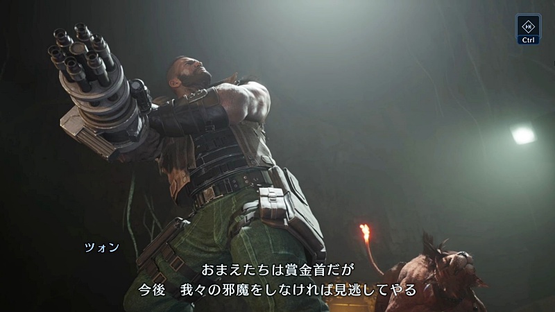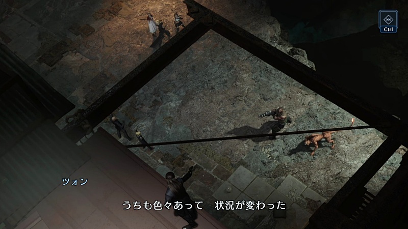 で、油断した隙にイリーナの手榴弾を食らいそうになるがナナキが間一髪で崖下に落としたところ。