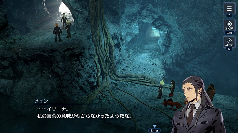 これはエバクラのFF7ストーリーのほうでのミスリルマインの場面だけど、こんなふうに余計な一言で敵であるクラウドたちに自分たちの行動目的を教えてしまう天然ドジっ子なところがイリーナのかわいらしさだったんだけどな。