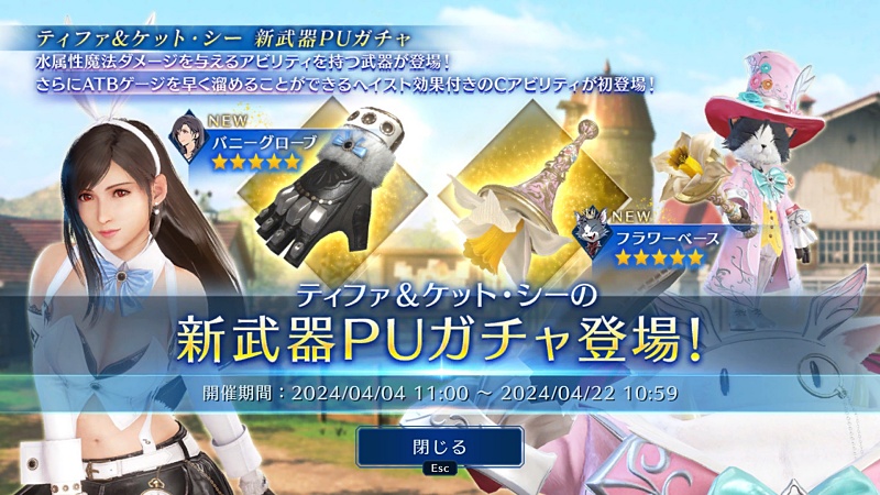 ティファ&ケット・シーがイースターイベントガチャの第二弾で、第一弾はエアリス&ルティア。