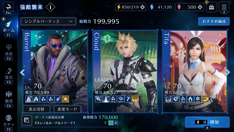 ではこちらもクラウドバレットティファの初期パーティで。
