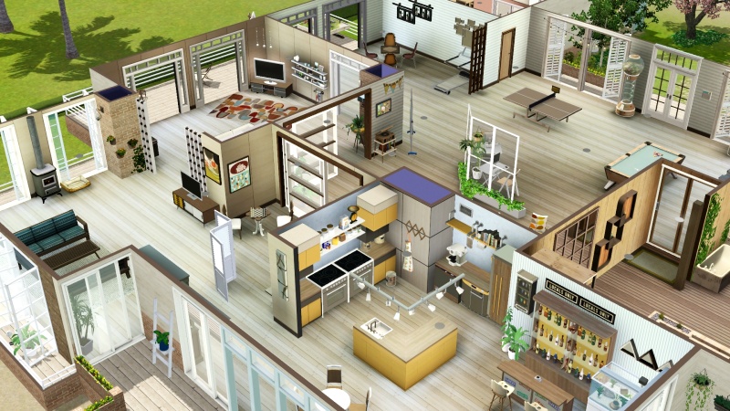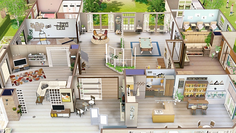 プレイする用の家はシムたちを観察しやすように平屋建築がほとんど。