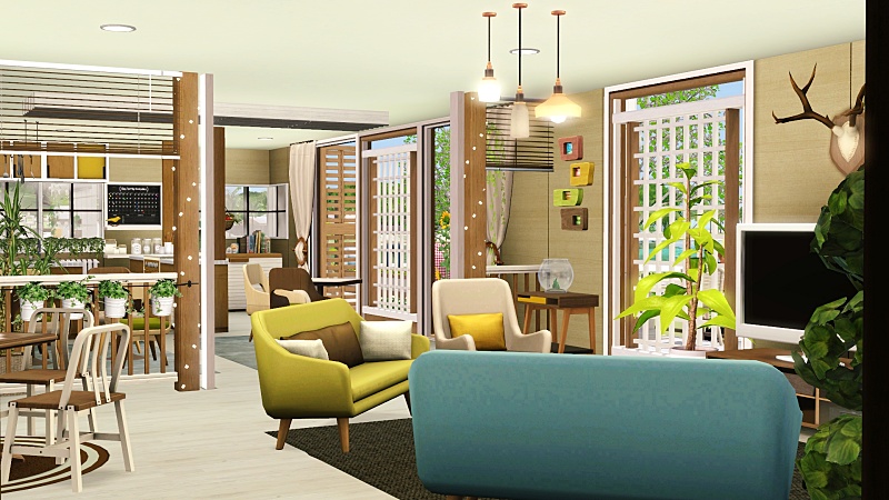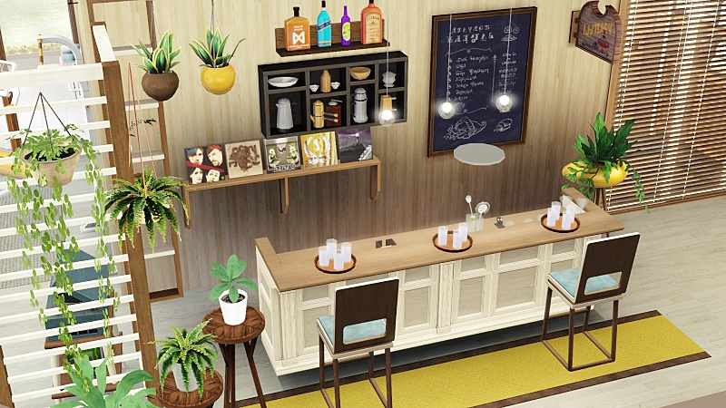 シムたちの食事する風景が大好きでダイニングキッチンを念入りに建築していました。