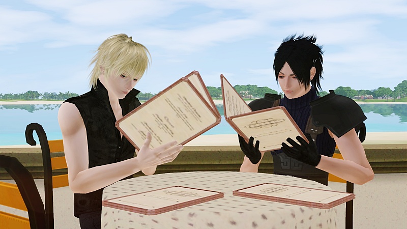 レストランへ行ってフリーで見守っていたら、クラウドとザックスは同じ席に座り、英雄はひとりで座ったのには笑ったw