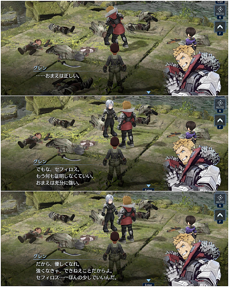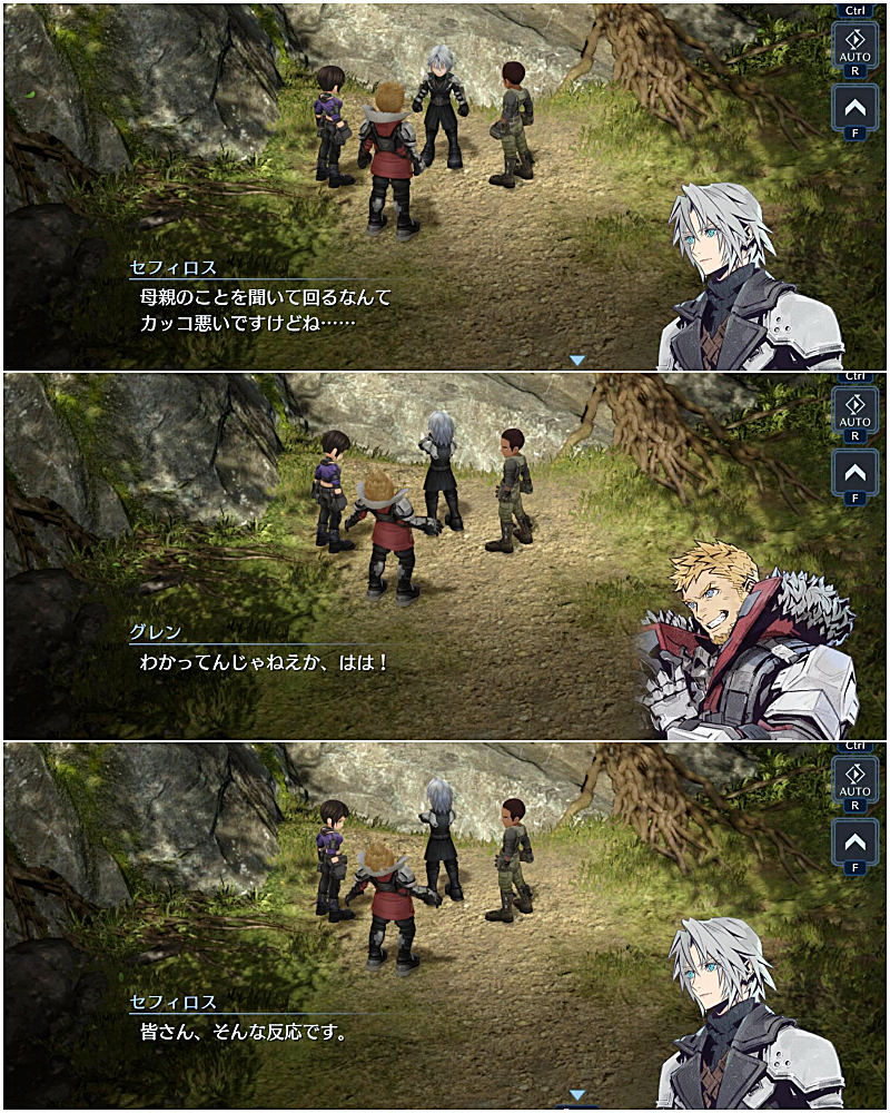 母親がいなく、今まで人と深く接することがなかったセフィロスが心を開いていくのと同時にグレンたちもセフィロスに対して仲間だと認めていく。