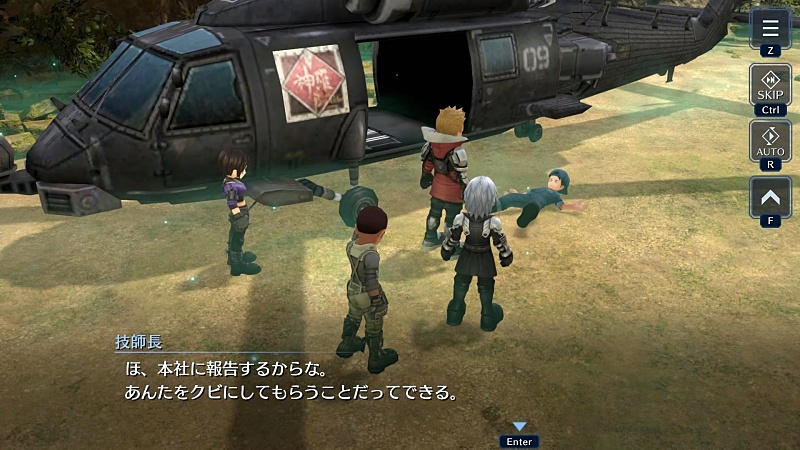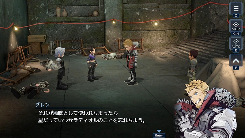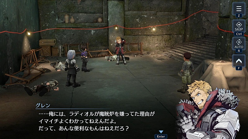 彼はグレンたちの手助けと、魔晄炉建設場所予定地となるこの島にいるラディオルの人たちをグレンらと一緒に片づけるためにやってきたという。