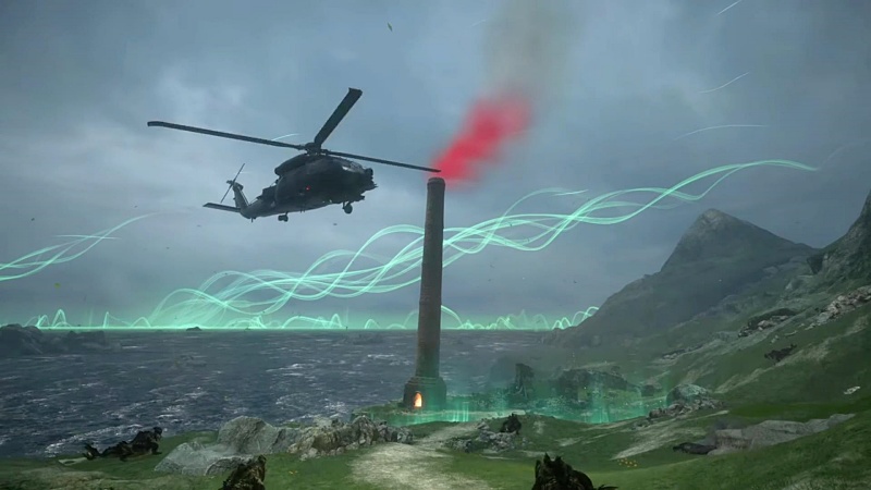 強奪した神羅のヘリに乗って、離島にひとりでいるローゼンを助けに。