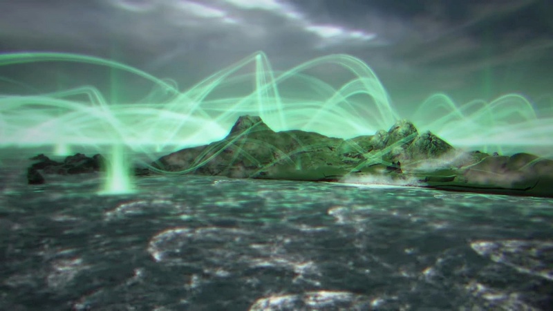 周囲を取り巻くグリーンの波状のものはFF7ではおなじみのライフストリーム。