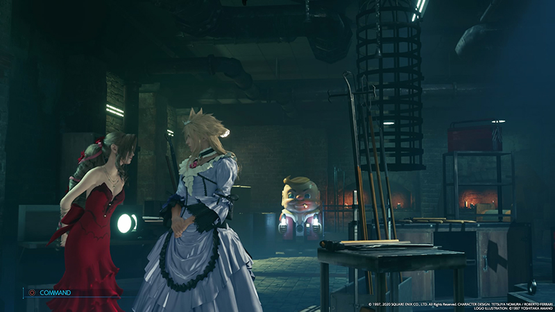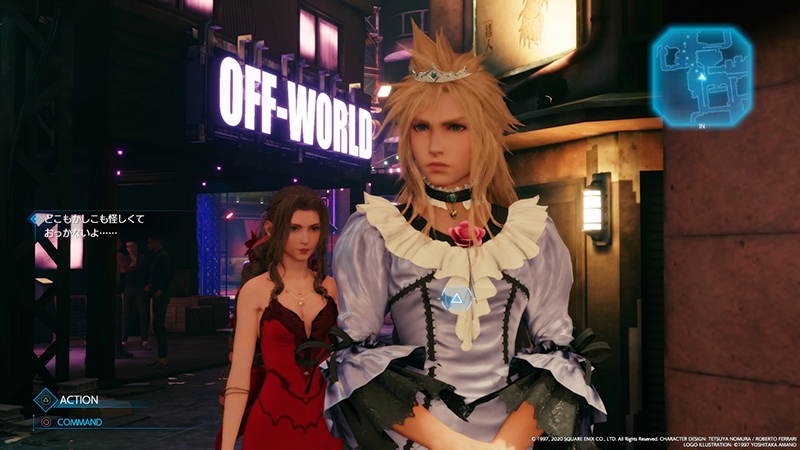 クラウドだけが変に気合の入ったドレス姿で笑える。