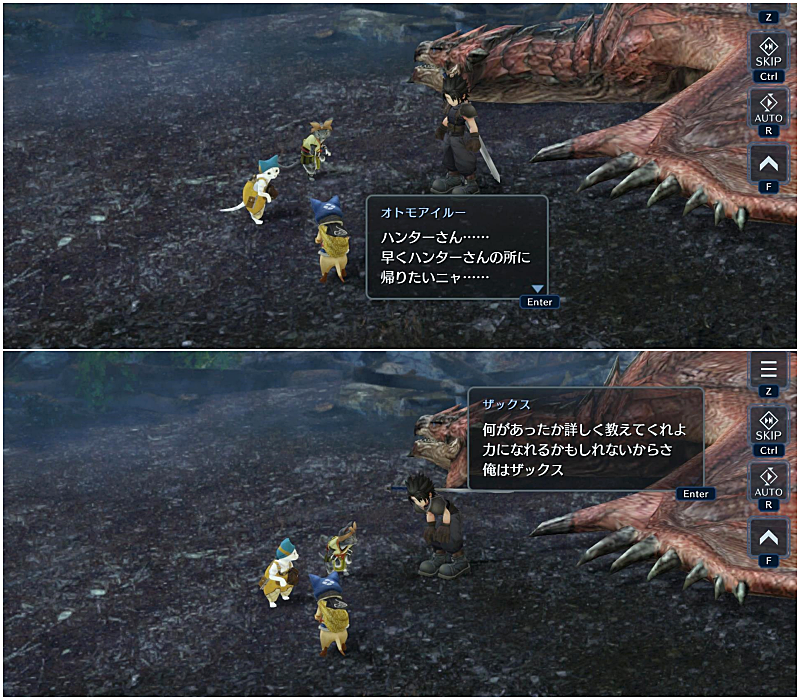 オトモアイルーはハンターさんを、そしてザックスはVRの異常原因を突き止めるために偶然出会い…