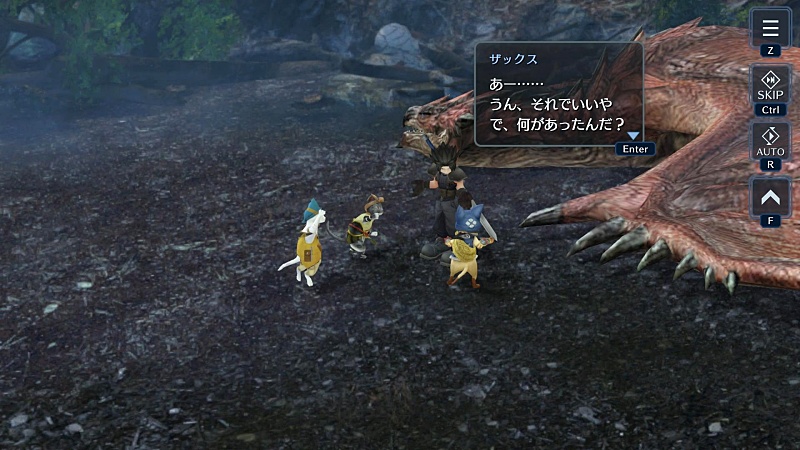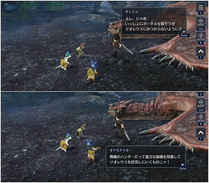 で、ザックスがアイルーたちの帰り道となるポータル探しの手伝いとリオレウス討伐も請け負うことに。