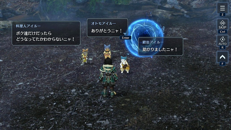 で、リオレウスを倒していたらポータルが現れて、それぞれ元いた場所へ。