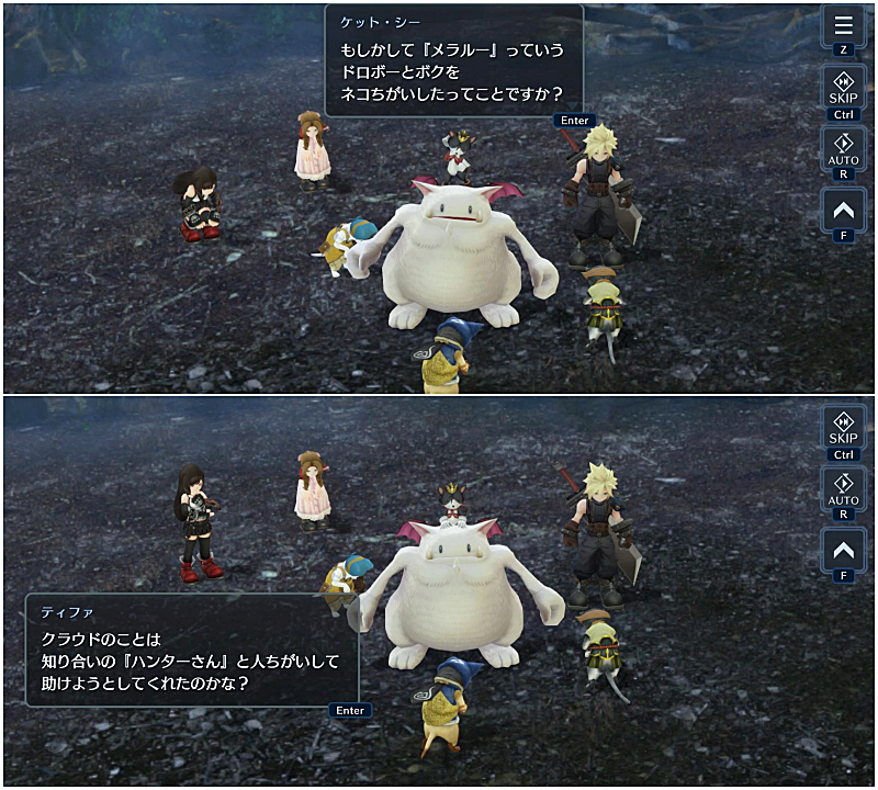 ザックスと同じくアイルーたちが元の世界に帰れるよう協力するというクラウド一行。