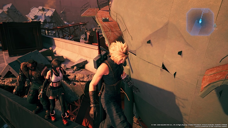 ここでティファが誤って高いところから落ちる場面があるんだけど、その時上で見守っていたクラウドがめっちゃ焦った様子で「ティファ!」って声をかけるのがツボ。